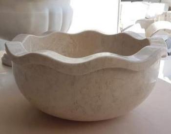 Düz Fırfırlı Yuvarlak Bej Mermer Kurna