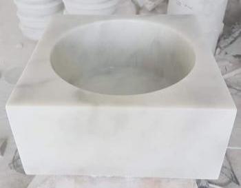 Kare Köşeli Bulutlu Beyaz Mermer Kurna