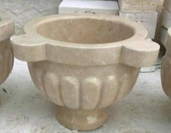 Kavun Dilimli Ayaklı Bej Mermer Kurna