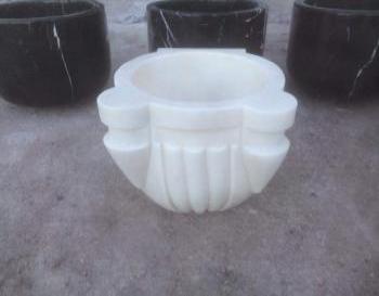 Oluk İşlemeli Beyaz Mermer Kurna