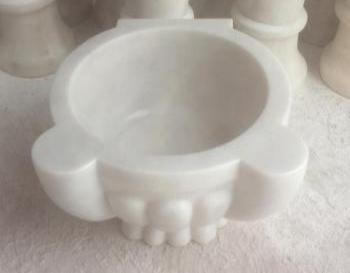İşlemeli Kavun Dilimli Beyaz Mermer Kurna