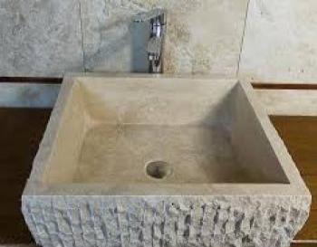 Dikey Patlatma Kare Traverten Lavabo & Evye